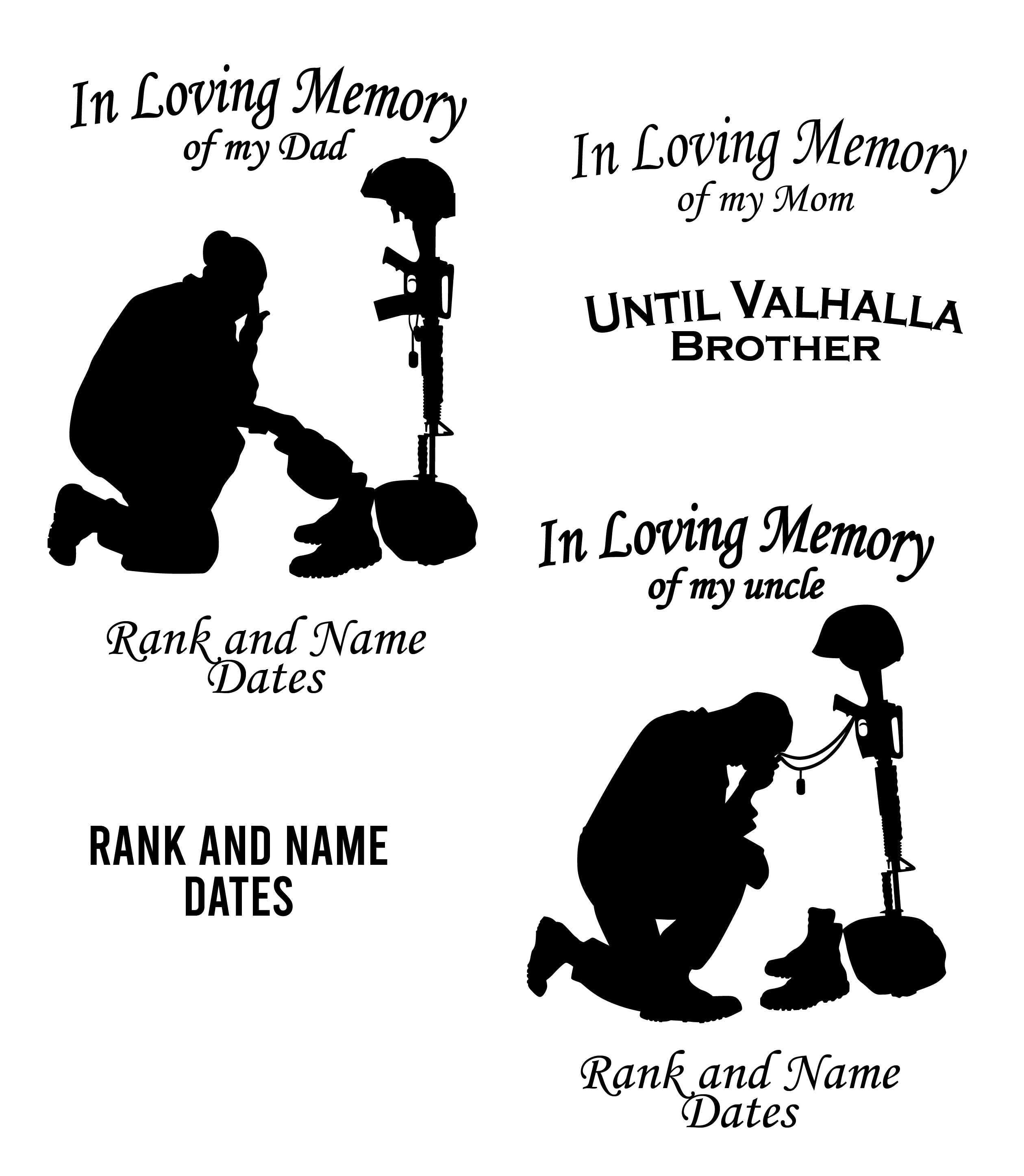 We definitely don't want you to need one of these, but we offer two styles to customize your memorializing of a loved one. All text can be changed to get the message you want.