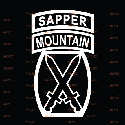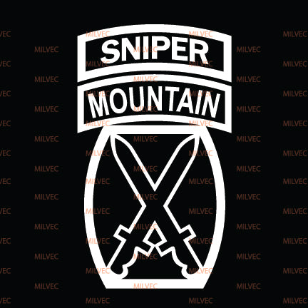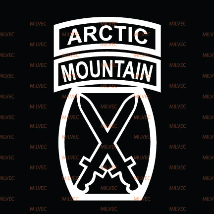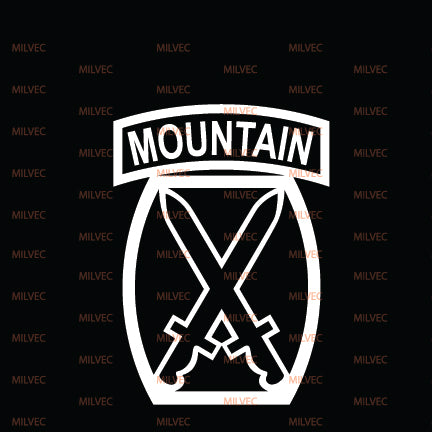 The10th Mountain patchin cutout vinyl. Intended for vehicle windows but can be used on any smooth surface. White and lighter colors show better on back vehicle windows.