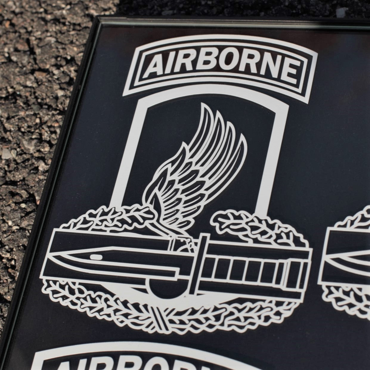 The 173rd Airborne with Combat Action Badge CAB in cutout vinyl. Intended for vehicle windows but can be used on any smooth surface. White and lighter colors show better on back vehicle windows.