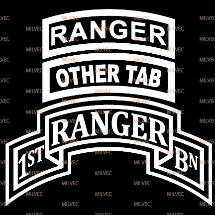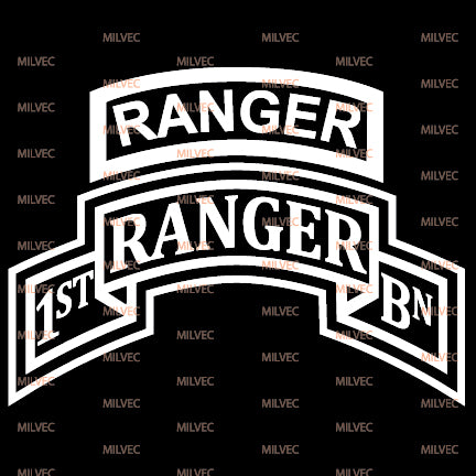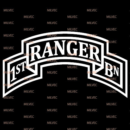 The 1st Ranger scroll with optional Ranger tab in cutout vinyl. Intended for vehicle windows but can be used on any smooth surface. White and lighter colors show better on back vehicle windows.
