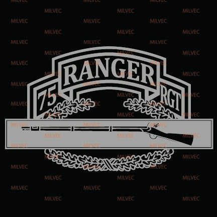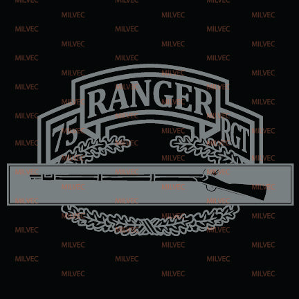 The 75th Ranger scroll and Combat Infantry Badge (CIB) in cutout vinyl. Intended for vehicle windows but can be used on any smooth surface. Background color simulates a back window, only lighter colors will show well due to inside of vehicle being dark compared to sunlight.