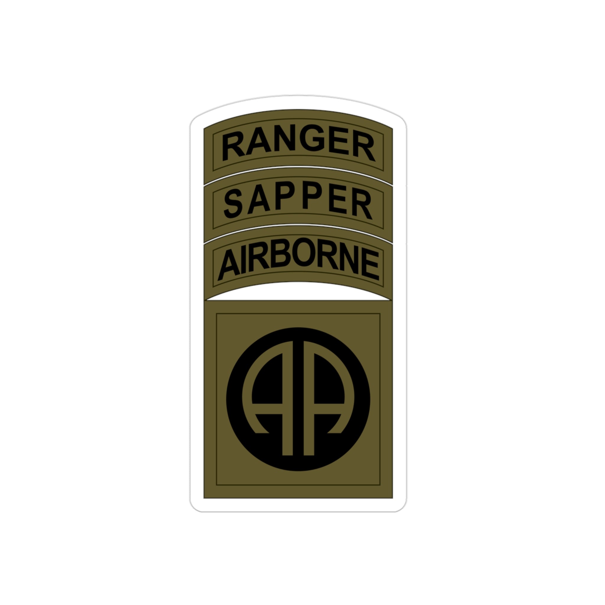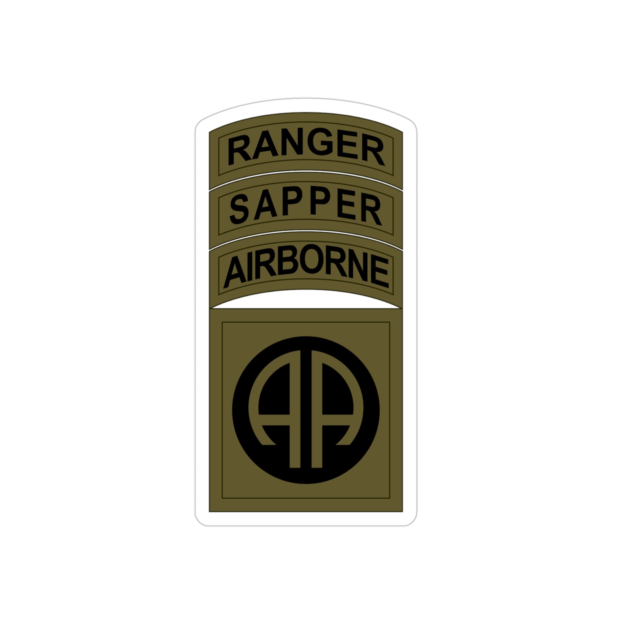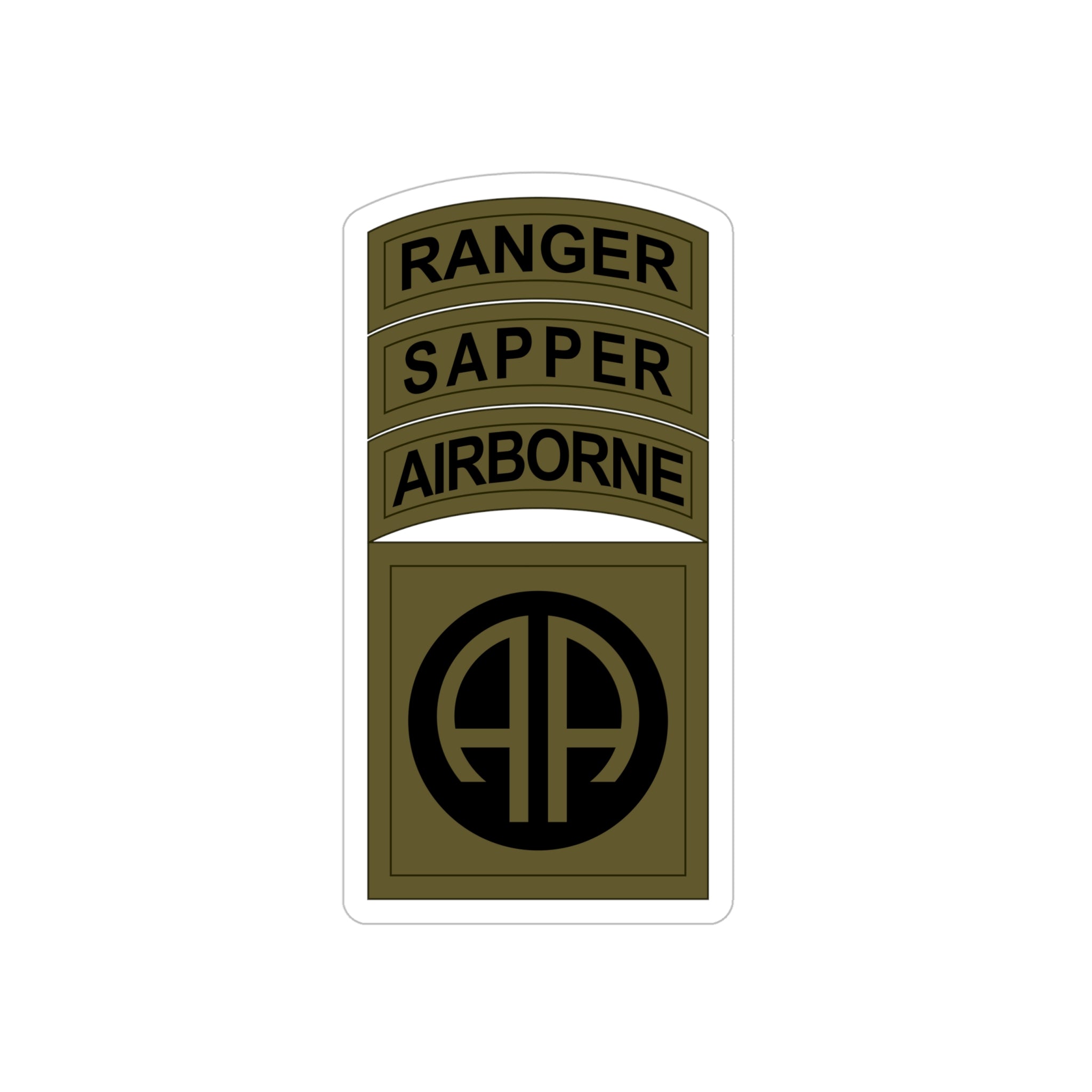 The OD version of the 82nd Airborne patch, Sapper and Ranger tabs