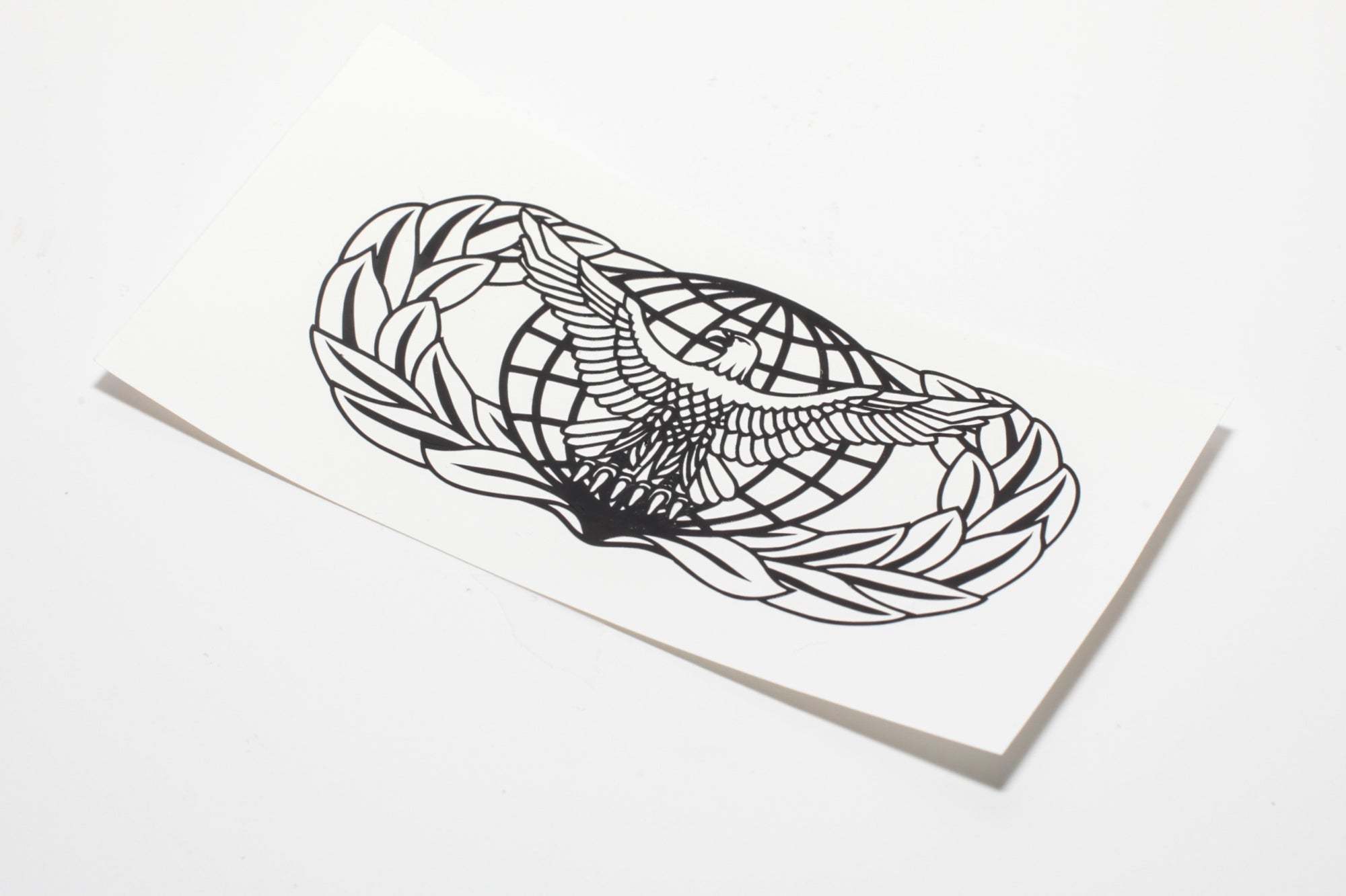 The Air Force Protection Badge in cutout vinyl. Intended for vehicle windows but can be used on any smooth surface. White and lighter colors show better on back vehicle windows.