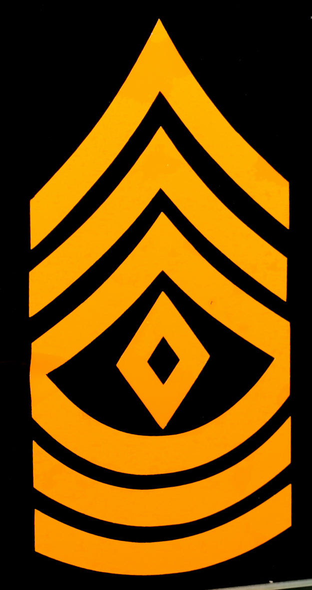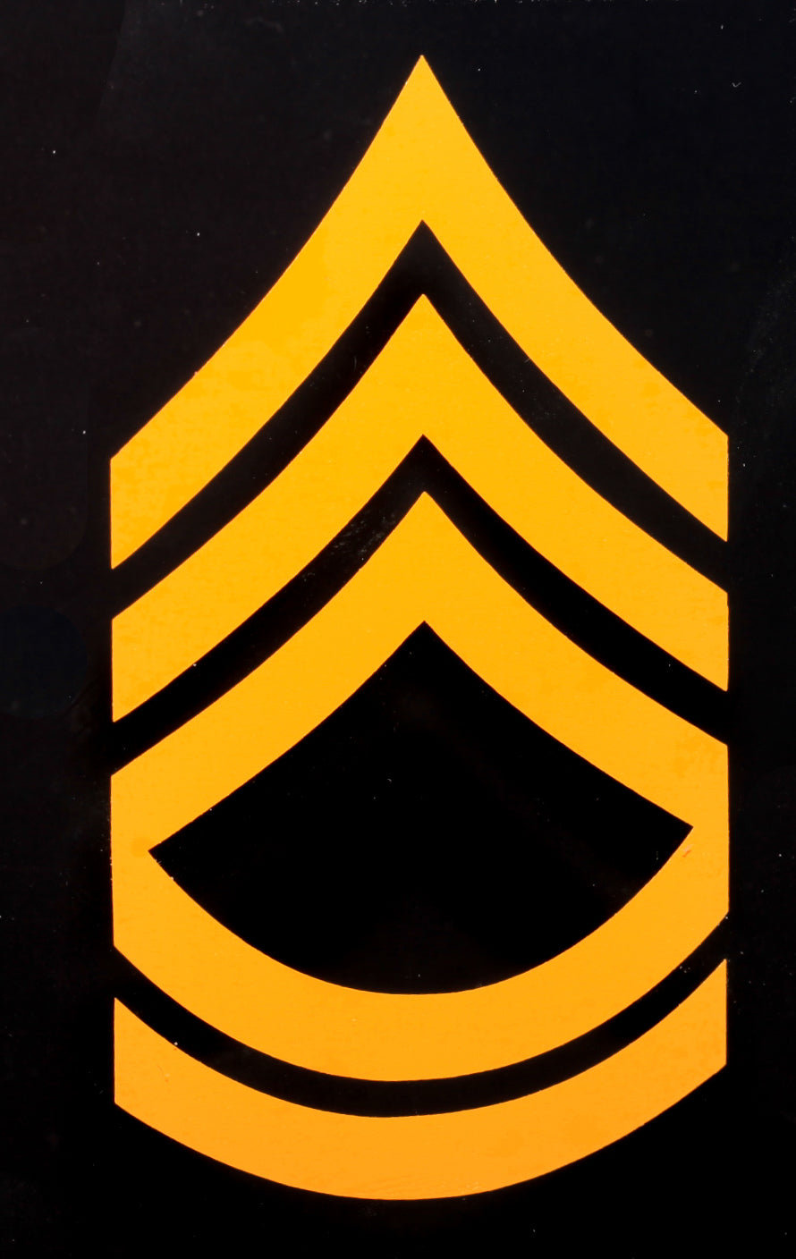 NCO Rank in yellow cutout vinyl. The size will affect the height and these are in proportion to the real rank, e.g. a 1" SGT rank will be shorter than a MSG rank.