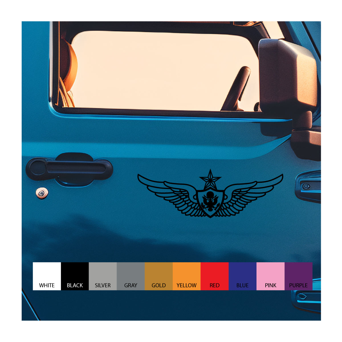 The Army Aviation Crew Member badgein cutout vinyl. Intended for vehicle windows but can be used on any smooth surface. White and lighter colors show better on back vehicle windows.