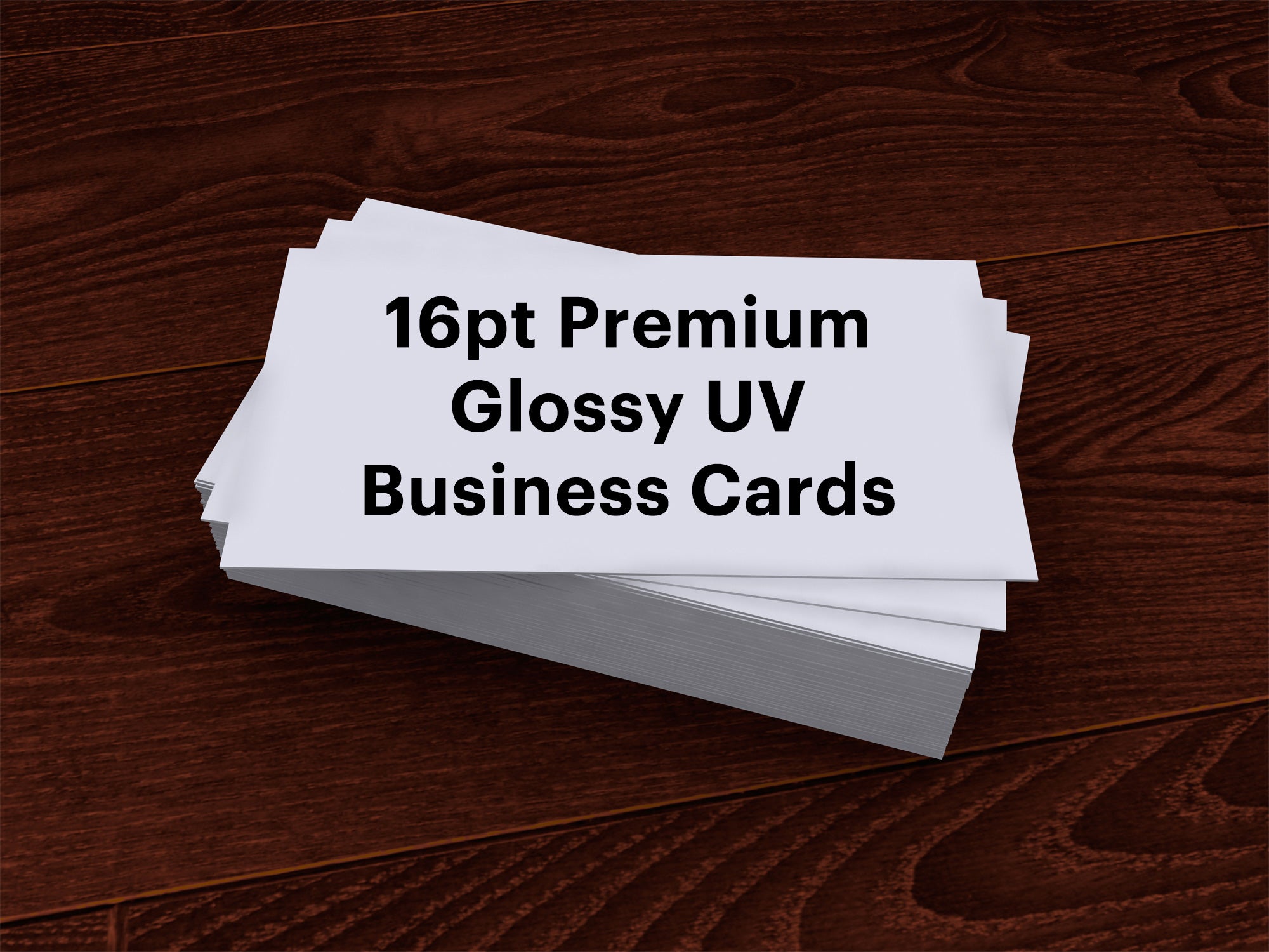 UV coated 16pt business cards with full color on both sides. We will work with you, starting with your ideas. A proof will be sent to you and based on feedback, we'll get it to look the way you want. The best price starts at 1000 but we have lower quantities.