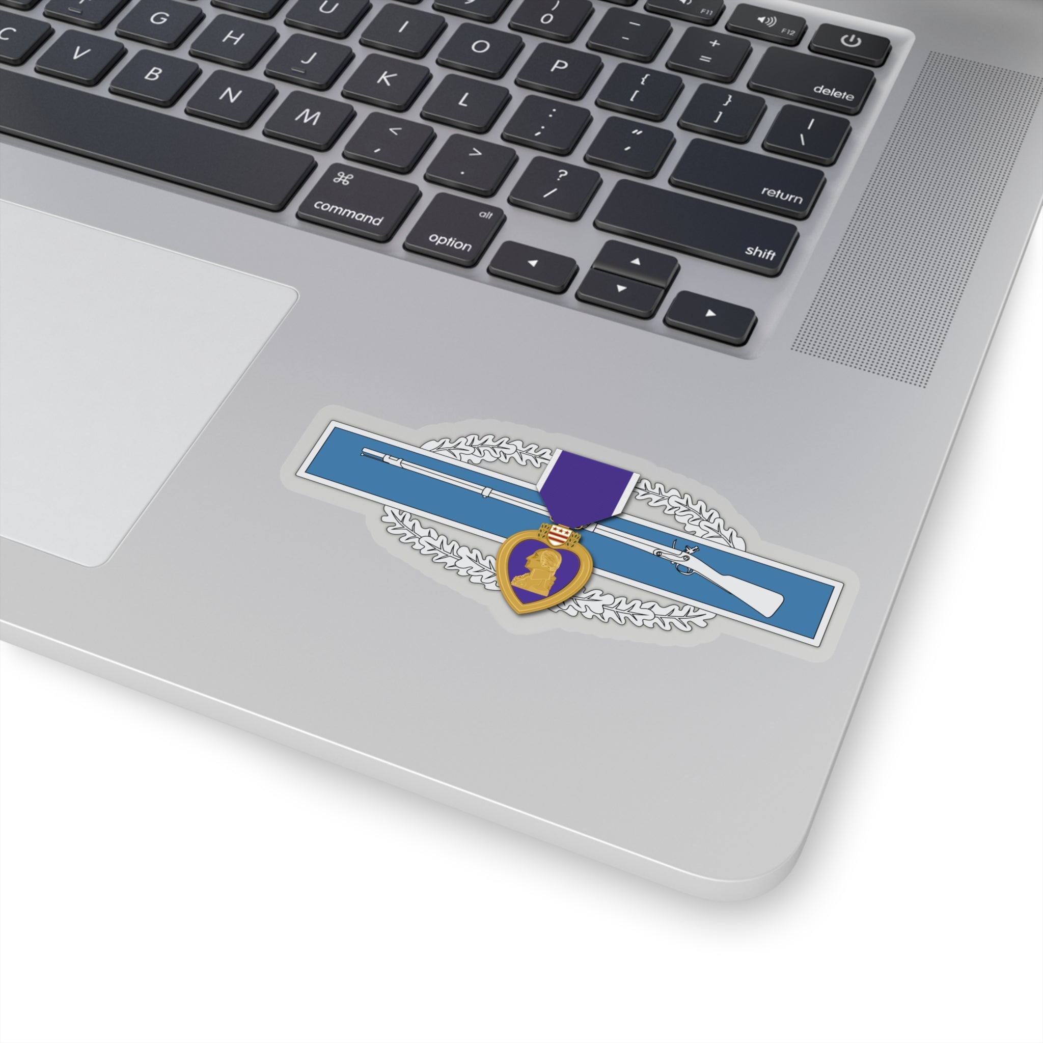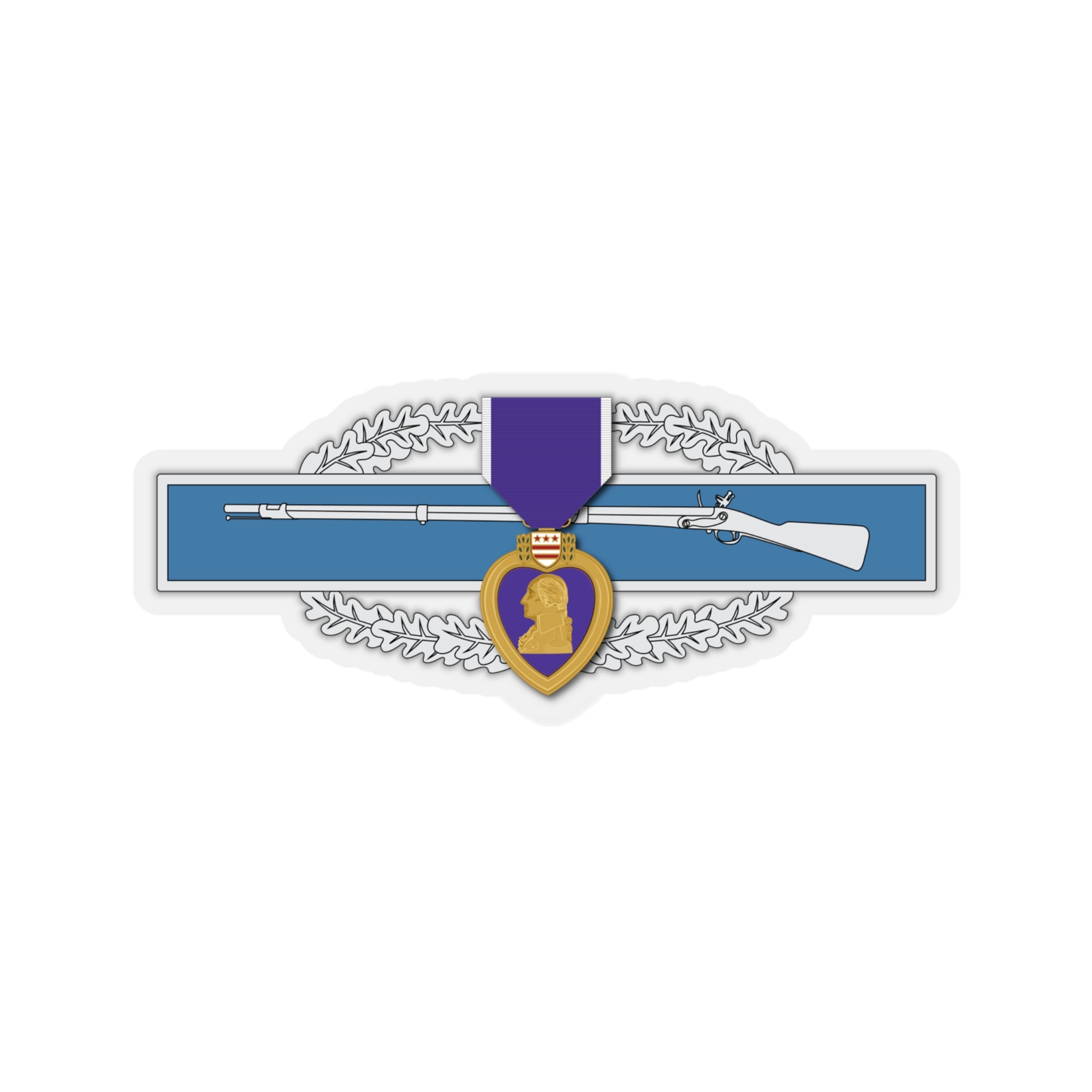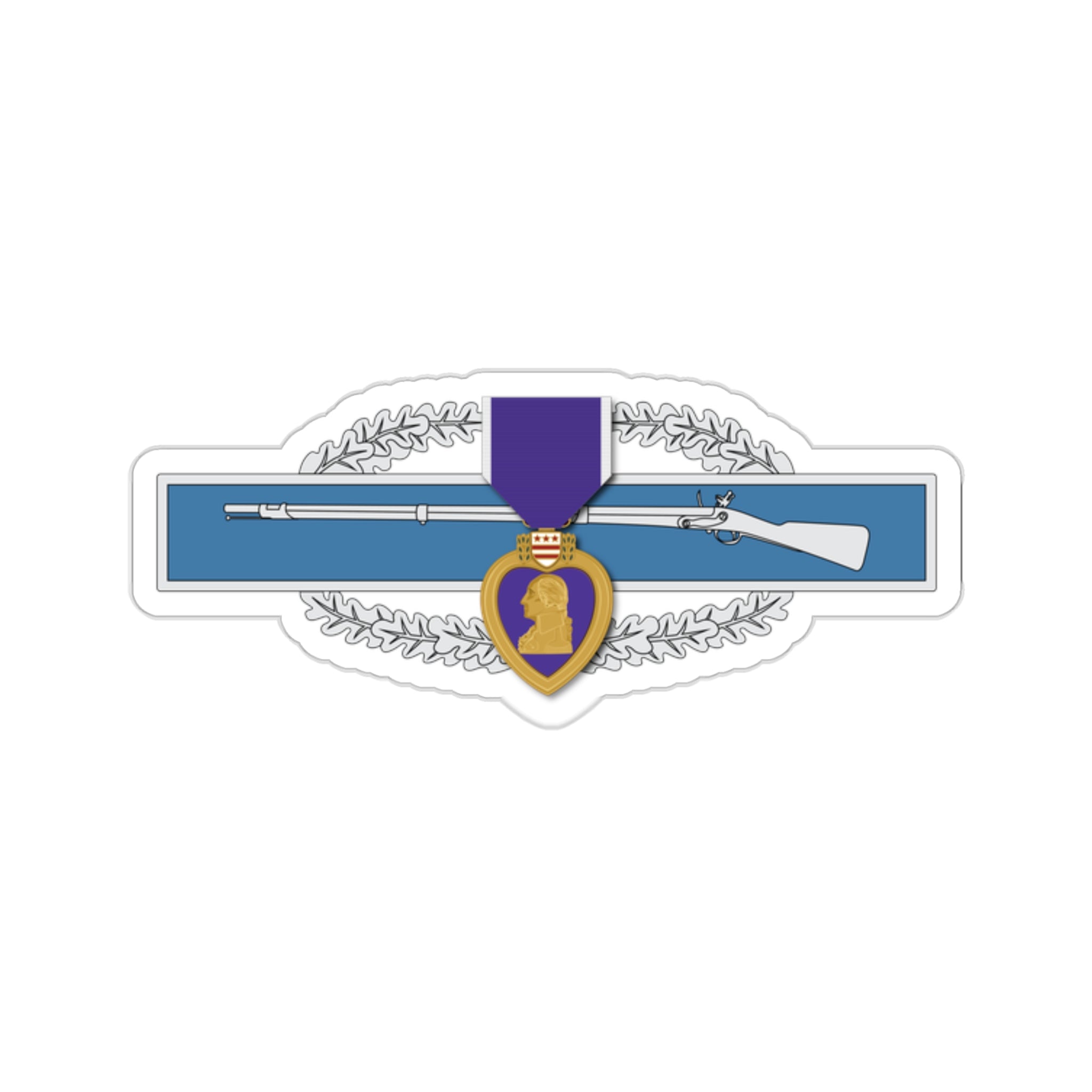 The Combat Infantry Badge (CIB) behind the Purple Heart. Both are original illustrations created by us for you to display your combat service with pride.