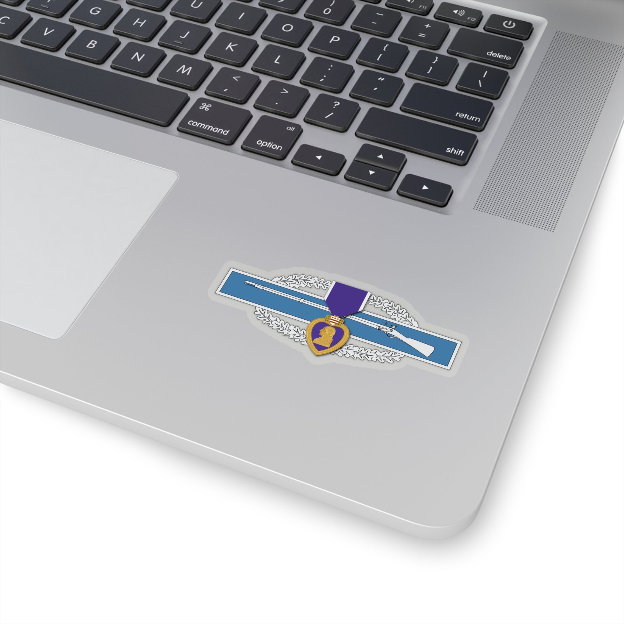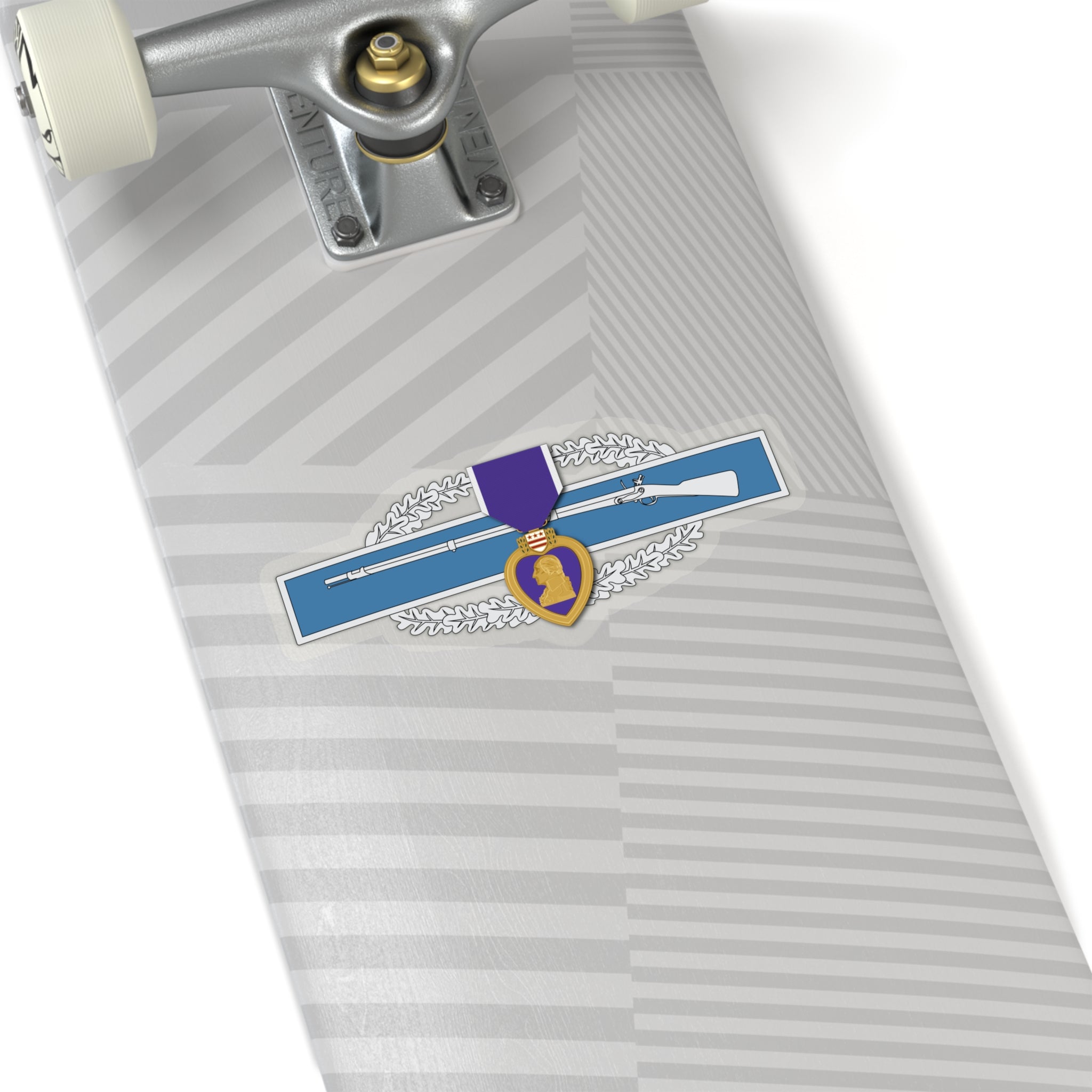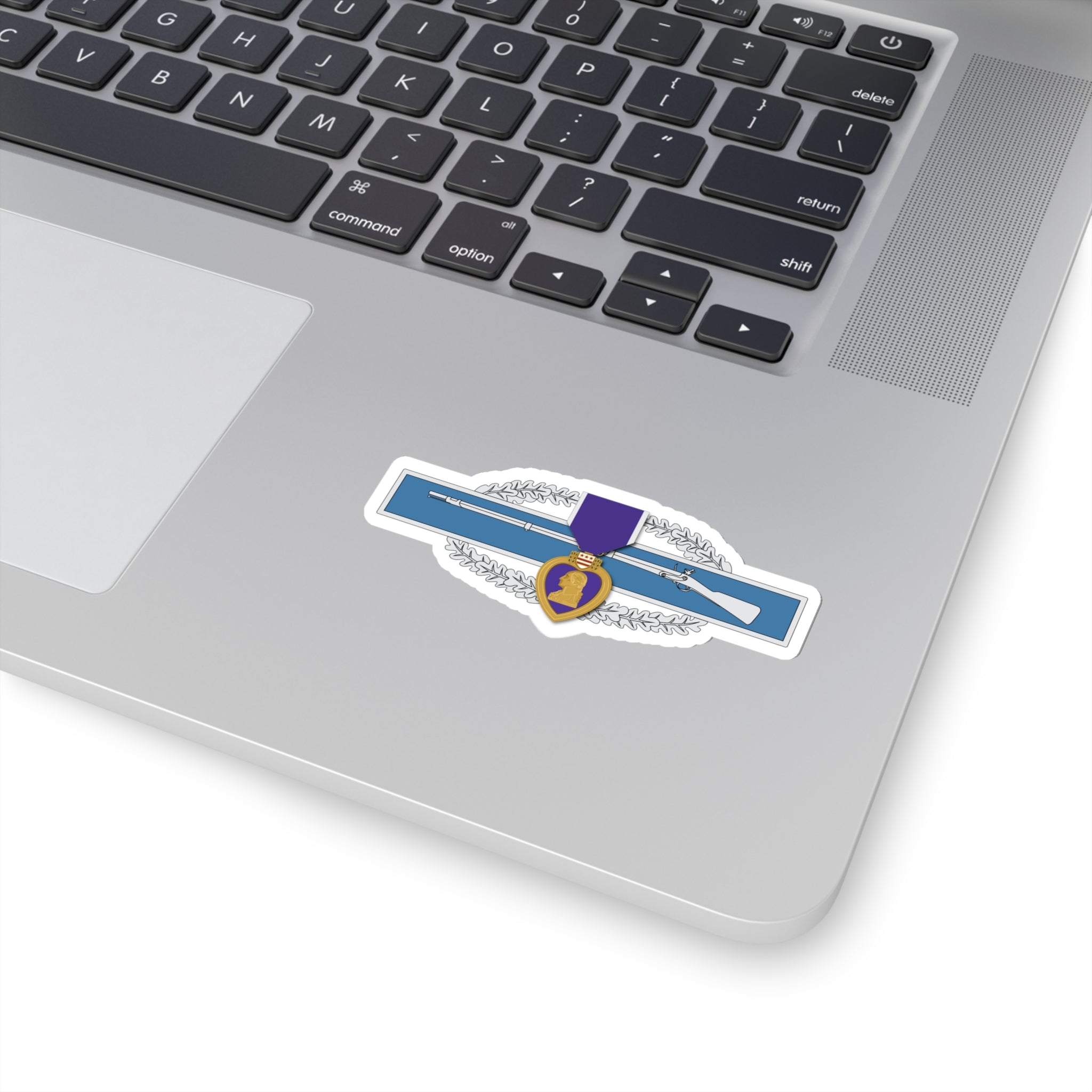 The Combat Infantry Badge (CIB) behind the Purple Heart. Both are original illustrations created by us for you to display your combat service with pride.