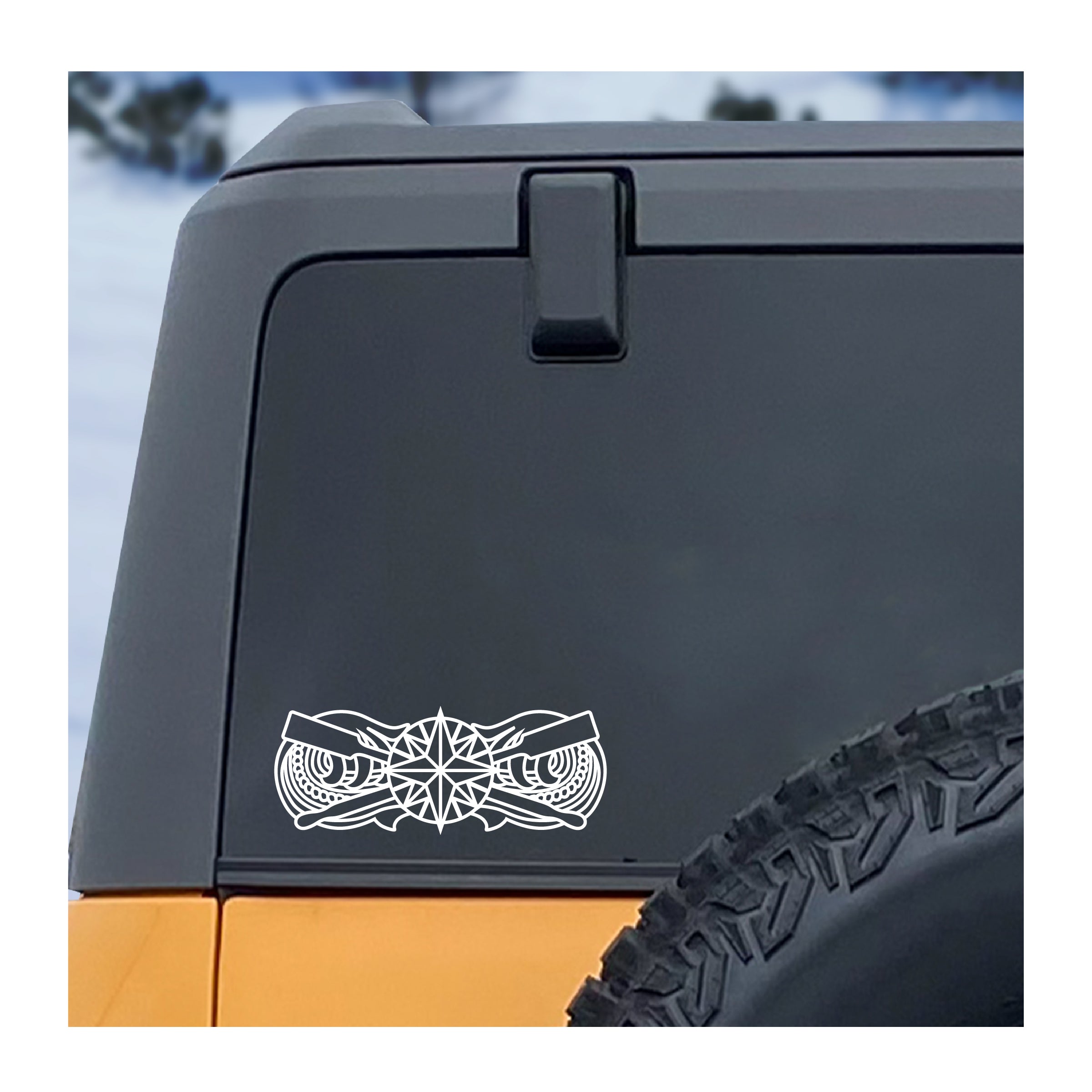 The Coast Guard Coxswain Insignia in cutout vinyl. Intended for vehicle windows but can be used on any smooth surface. White and lighter colors show better on back vehicle windows.
