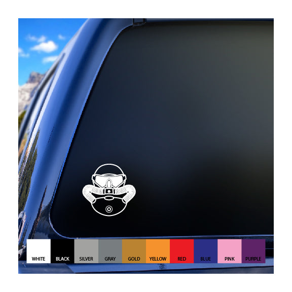 TheCombatant Diver in cutout vinyl. Intended for vehicle windows but can be used on any smooth surface. White and lighter colors show better on back vehicle windows.