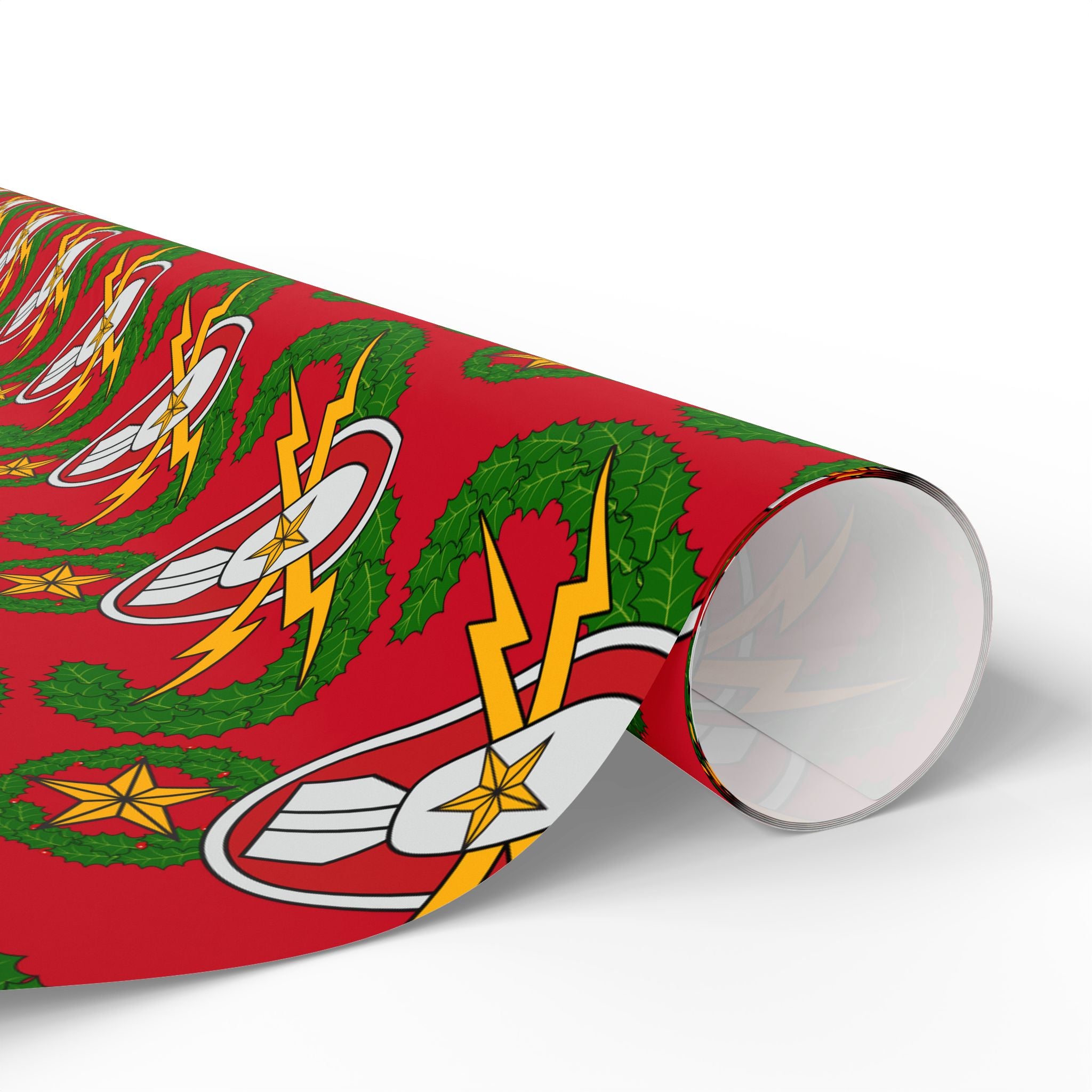 Custom wrapping paper with the Master EOD badge with holly wreath.