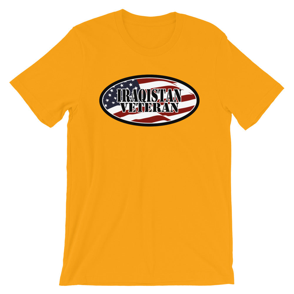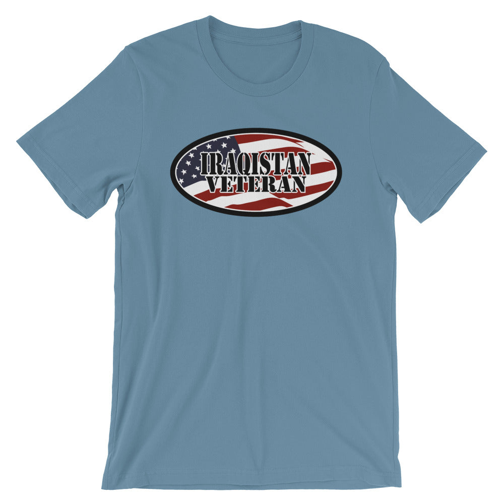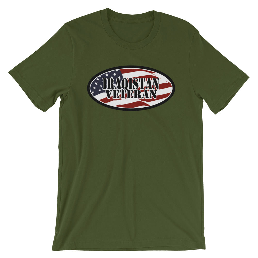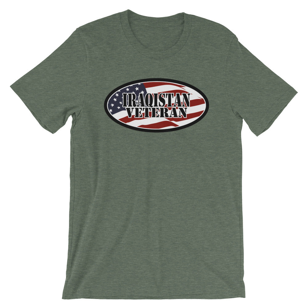 Iraq + Afghanistan = Iraqistan for the Veterans with a US Flag behind.