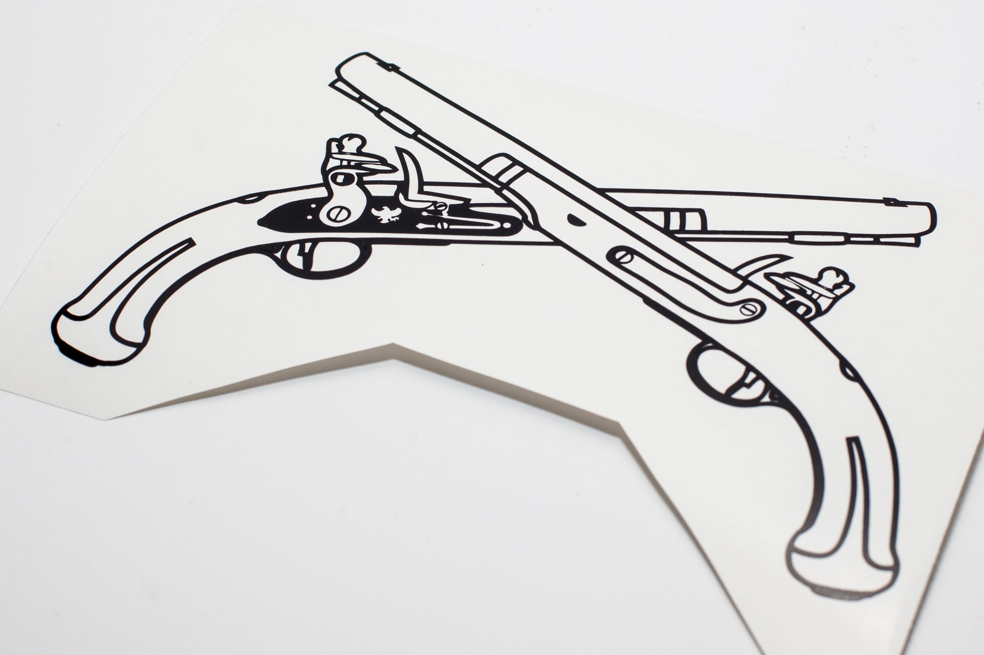 The Military Police branch insignia crossed pistols in cutout vinyl. Intended for vehicle windows but can be used on any smooth surface. White and lighter colors show better on back vehicle windows.