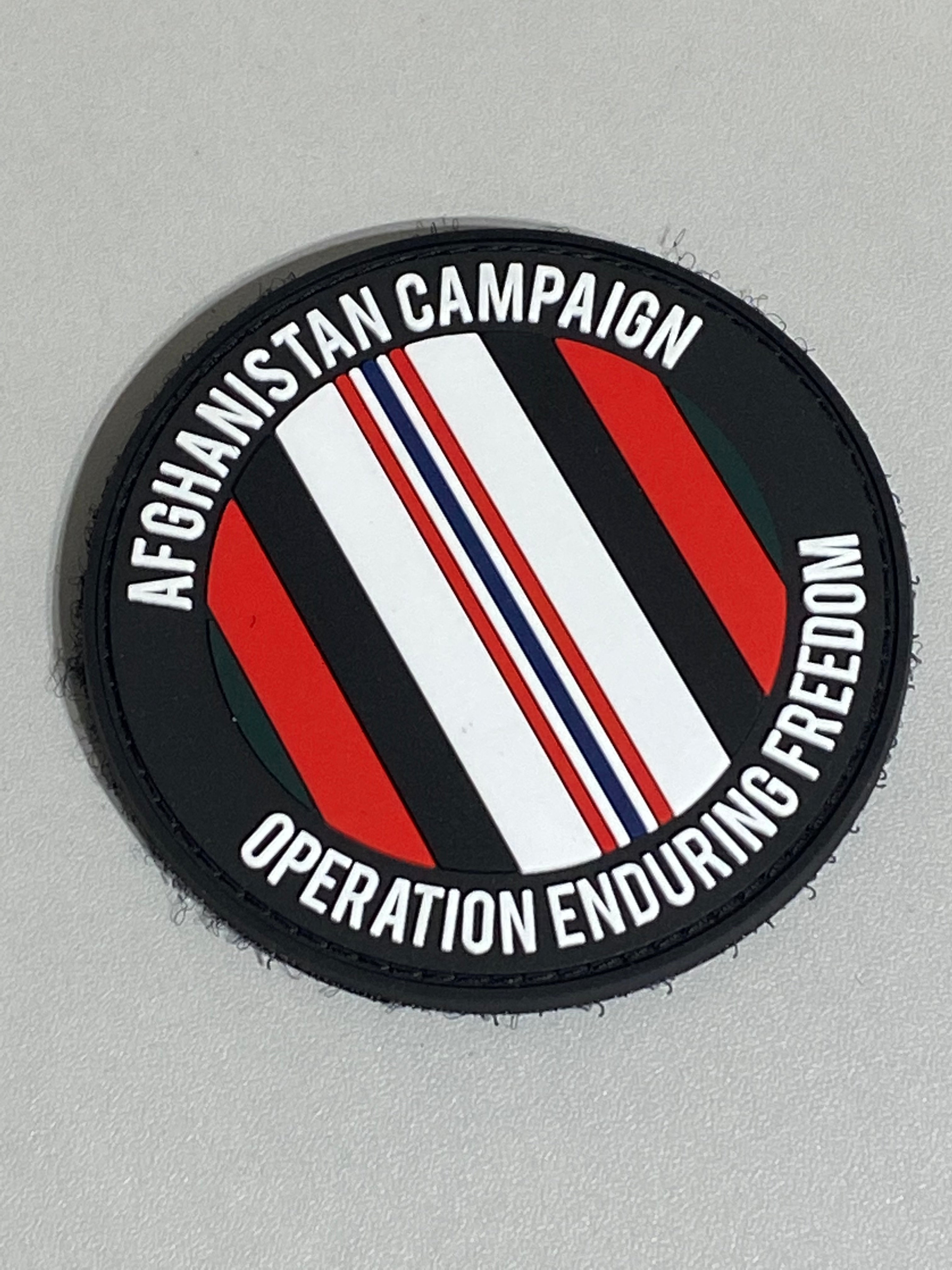 Operation Enduring Freedom OEF patch with hook and loop backing. 2.5” wide