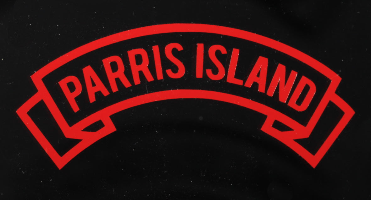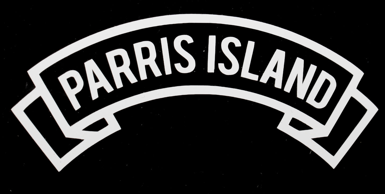 The Parris Island tab in cutout vinyl. Intended for vehicle windows but can be used on any smooth surface. White and lighter colors show better on back vehicle windows.