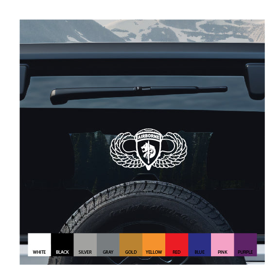 TheSpecial OperationsCommand Africa SOCAFpatch and Airborne or Airborne Master wings in cutout vinyl. Intended for vehicle windows but can be used on any smooth surface. White and lighter colors will show best due to inside of vehicle being dark compared to sunlight.