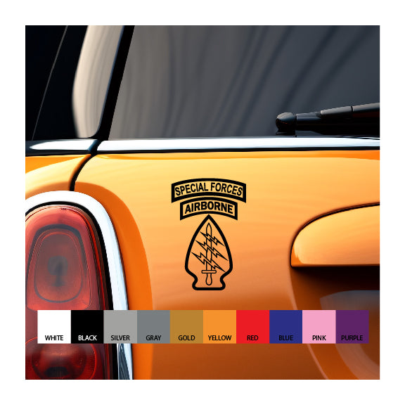The Special Forces patch with Airborne tab in cutout vinyl. Intended for vehicle windows but can be used on any smooth surface. Intended for vehicle windows but can be used on any smooth surface. White and lighter colors show better on back vehicle windows.