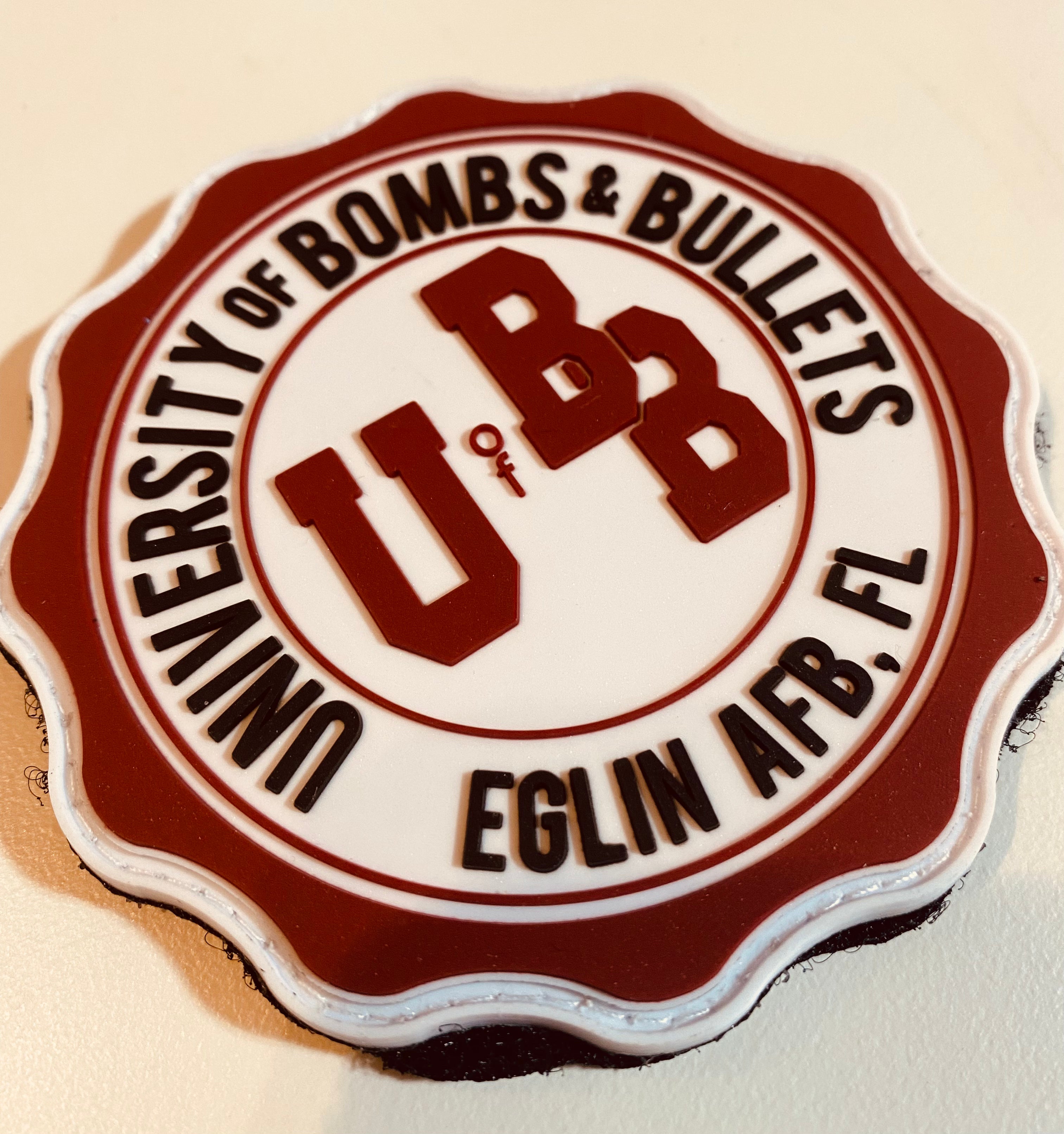 The “University of Bombs and Bullets” is more than a nickname — it’s earned at Eglin. This durable patch has hook-and-loop backing and crisp detail, ready to stick on rucks, range bags, or shadowboxes.