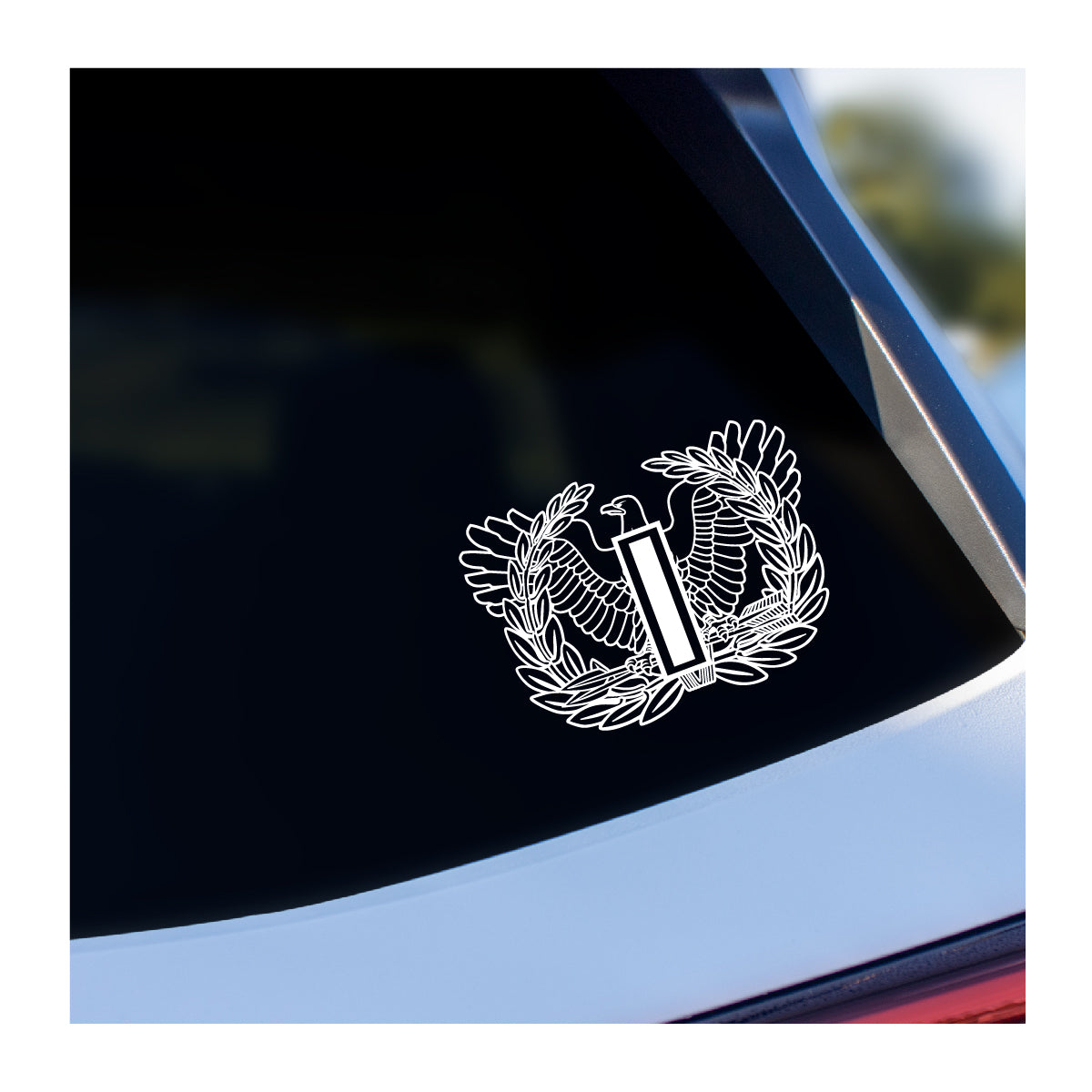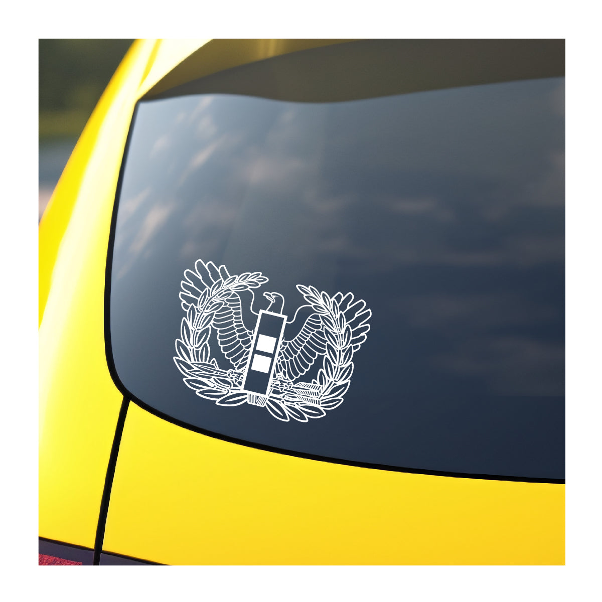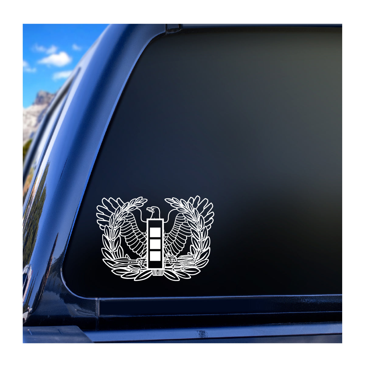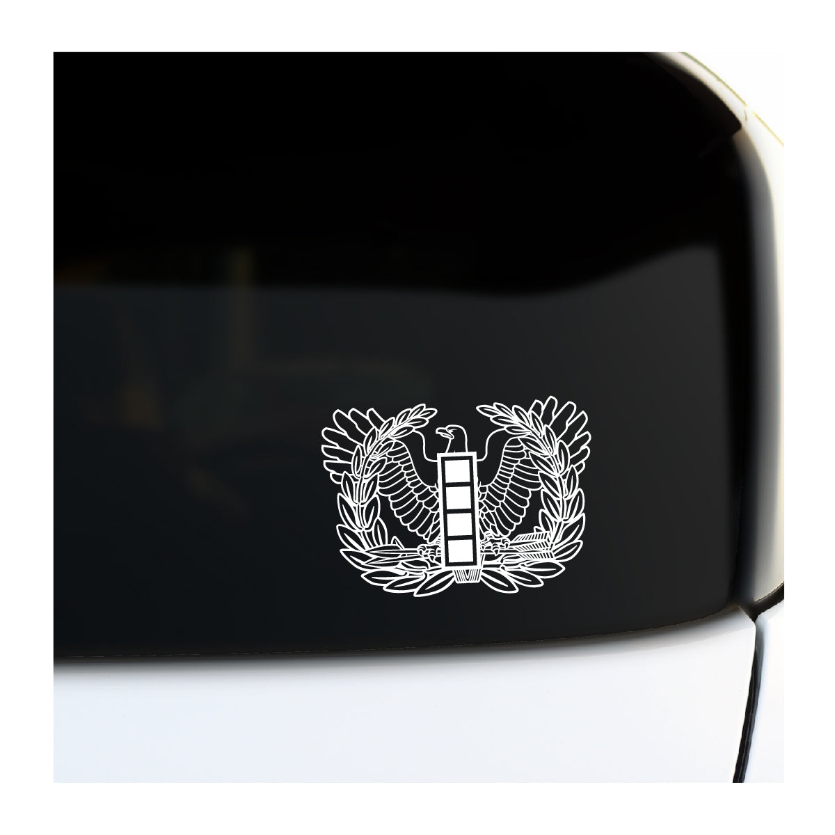 The Warrant Officer with Rank embedded in cutout vinyl. Intended for vehicle windows but can be used on any smooth surface. White and lighter colors show better on back vehicle windows.