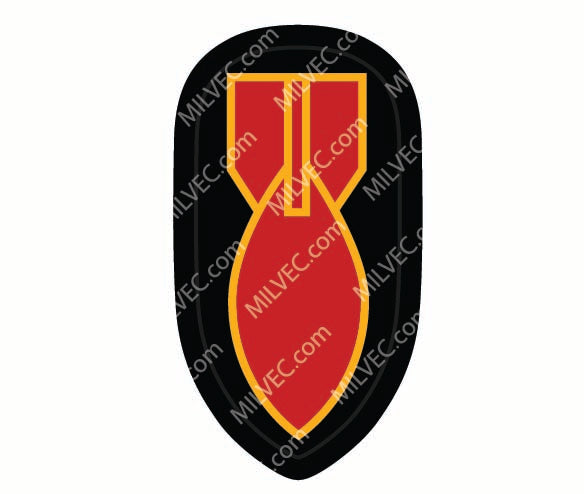 Original illustration of the Bomb Disposal patch approved in 1942 and worn by technicians during World War II, the origins of the Explosive Ordnance Disposal technicians of today.